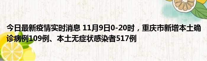 今日最新疫情实时消息 11月9日0-20时,重庆市新增本土确诊病例109例、本土无症状感染者517例