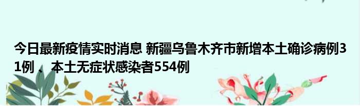 今日最新疫情实时消息 新疆乌鲁木齐市新增本土确诊病例31例 、本土无症状感染者554例