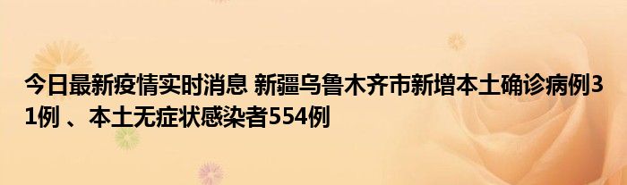 今日最新疫情实时消息 新疆乌鲁木齐市新增本土确诊病例31例 、本土无症状感染者554例