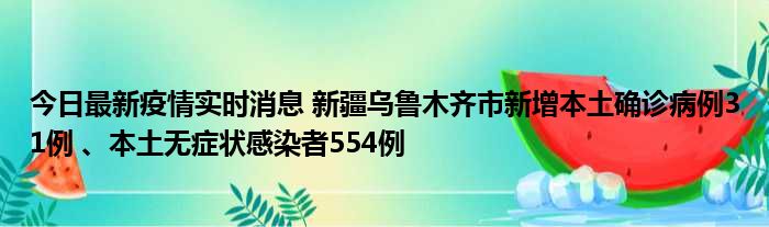 今日最新疫情实时消息 新疆乌鲁木齐市新增本土确诊病例31例 、本土无症状感染者554例
