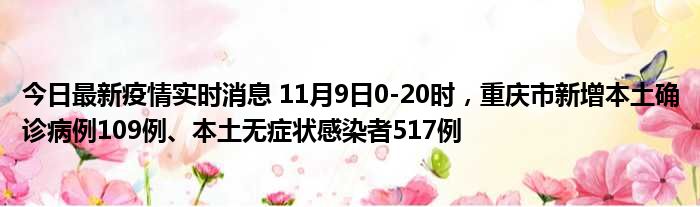 今日最新疫情实时消息 11月9日0-20时,重庆市新增本土确诊病例109例、本土无症状感染者517例