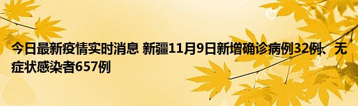 新疆卫健委通报,11月9日0时至24时,新疆维吾尔自治区新增确诊病例32例,新增无症状感染者657例,新增确诊病例治愈出院7例,新增无症状感