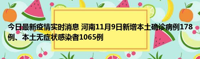 今日最新疫情实时消息 河南11月9日新增本土确诊病例178例、本土无症状感染者1065例