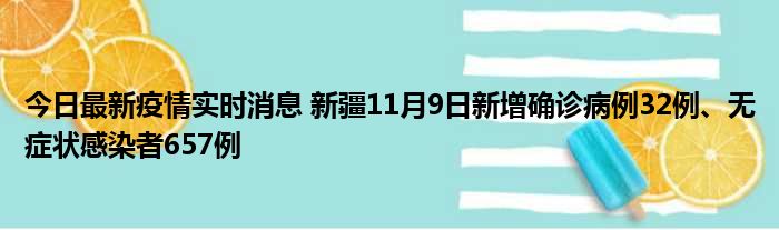 新疆卫健委通报,11月9日0时至24时,新疆维吾尔自治区新增确诊病例32例,新增无症状感染者657例,新增确诊病例治愈出院7例,新增无症状感