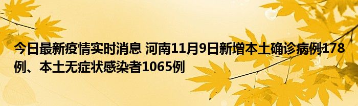 今日最新疫情实时消息 河南11月9日新增本土确诊病例178例、本土无症状感染者1065例