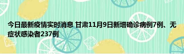 今日最新疫情实时消息 甘肃11月9日新增确诊病例7例、无症状感染者237例