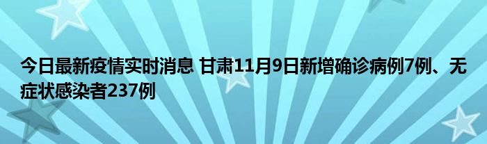 今日最新疫情实时消息 甘肃11月9日新增确诊病例7例、无症状感染者237例