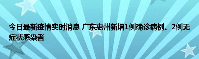 今日最新疫情实时消息 广东惠州新增1例确诊病例、2例无症状感染者