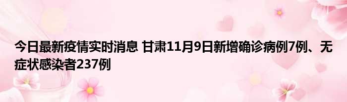 今日最新疫情实时消息 甘肃11月9日新增确诊病例7例、无症状感染者237例