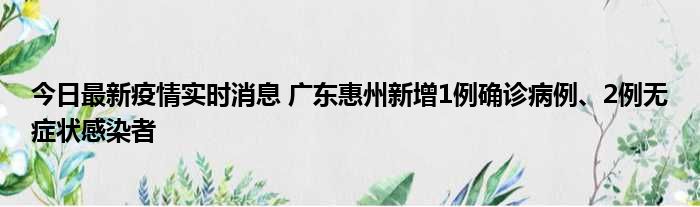 今日最新疫情实时消息 广东惠州新增1例确诊病例、2例无症状感染者