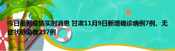 今日最新疫情实时消息 甘肃11月9日新增确诊病例7例、无症状感染者237例