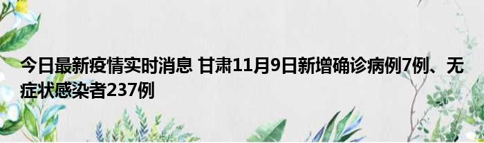 今日最新疫情实时消息 甘肃11月9日新增确诊病例7例、无症状感染者237例