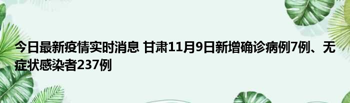 今日最新疫情实时消息 甘肃11月9日新增确诊病例7例、无症状感染者237例