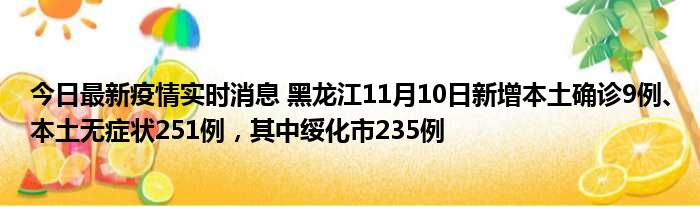 今日最新疫情实时消息 黑龙江11月10日新增本土确诊9例、本土无症状251例,其中绥化市235例