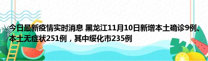 今日最新疫情实时消息 黑龙江11月10日新增本土确诊9例、本土无症状251例,其中绥化市235例