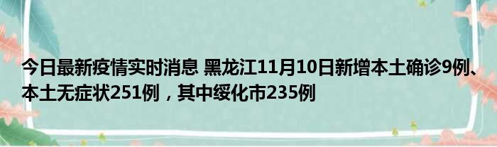 今日最新疫情实时消息 黑龙江11月10日新增本土确诊9例、本土无症状251例,其中绥化市235例