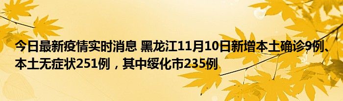 今日最新疫情实时消息 黑龙江11月10日新增本土确诊9例、本土无症状251例,其中绥化市235例