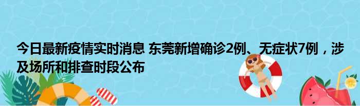 今日最新疫情实时消息 东莞新增确诊2例、无症状7例,涉及场所和排查时段公布