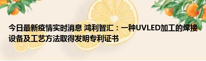 今日最新疫情实时消息 鸿利智汇:一种UVLED加工的焊接设备及工艺方法取得发明专利证书