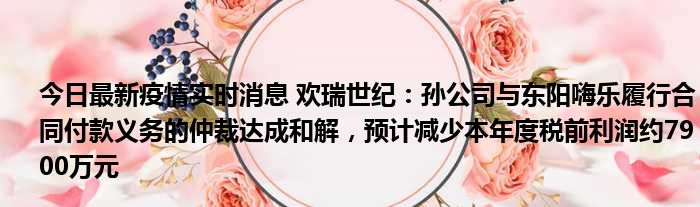 今日最新疫情实时消息 欢瑞世纪:孙公司与东阳嗨乐履行合同付款义务的仲裁达成和解,预计减少本年度税前利润约7900万元