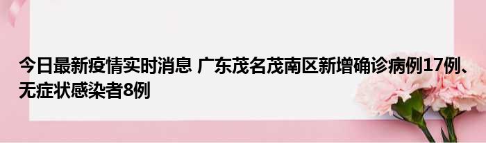 今日最新疫情实时消息 广东茂名茂南区新增确诊病例17例、无症状感染者8例
