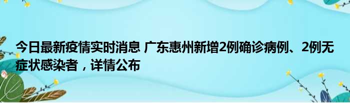 今日最新疫情实时消息 广东惠州新增2例确诊病例、2例无症状感染者,详情公布