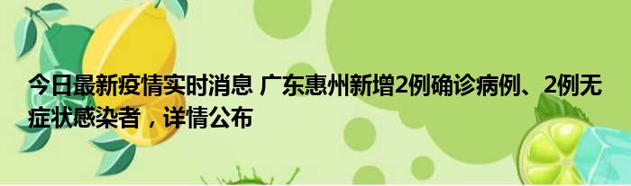 今日最新疫情实时消息 广东惠州新增2例确诊病例、2例无症状感染者,详情公布