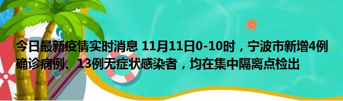 您的位置:首页 >动态频道 > 聚焦疫情 > 今日最新疫情实时消息 11月11日0-10时,宁波市新增4例确诊病例、13例无症状感染者,均在集中隔离点检出 2022-11-24 17:58:15 • 来源: 导读 免责声明:本文由用户上传,如有侵权请联系删除! 上一篇:今日最新疫情实时消息 深圳11月11日新增2例确诊病例和5例无症状感染者,详情公布 下一篇:今日最新疫情实时消息 陕西11月10日新增本土确诊5例、本土无症状17例