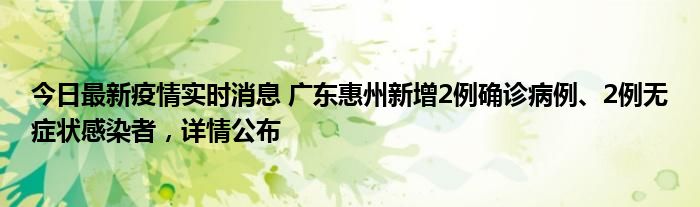 今日最新疫情实时消息 广东惠州新增2例确诊病例、2例无症状感染者,详情公布