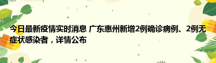 今日最新疫情实时消息 广东惠州新增2例确诊病例、2例无症状感染者,详情公布