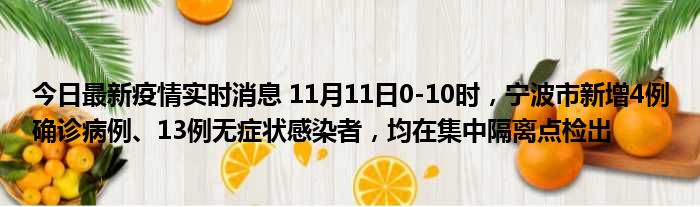 您的位置:首页 >动态频道 > 聚焦疫情 > 今日最新疫情实时消息 11月11日0-10时,宁波市新增4例确诊病例、13例无症状感染者,均在集中隔离点检出 2022-11-24 23:48:23 • 来源: 导读 免责声明:本文由用户上传,如有侵权请联系删除! 上一篇:今日最新疫情实时消息 深圳11月11日新增2例确诊病例和5例无症状感染者,详情公布 下一篇:今日最新疫情实时消息 北京朝阳区新增确诊病例1例,划定封控区