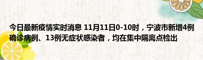 您的位置:首页 >动态频道 > 聚焦疫情 > 今日最新疫情实时消息 11月11日0-10时,宁波市新增4例确诊病例、13例无症状感染者,均在集中隔离点检出 2022-11-25 00:48:20 • 来源: 导读 免责声明:本文由用户上传,如有侵权请联系删除! 上一篇:今日最新疫情实时消息 深圳11月11日新增2例确诊病例和5例无症状感染者,详情公布 下一篇:今日最新疫情实时消息 日本天皇确诊前列腺肥大,月内将接受活检