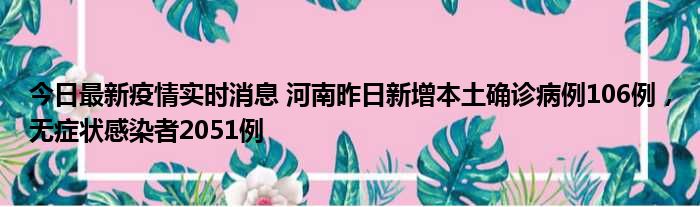 您的位置:首页 >动态频道 > 聚焦疫情 > 今日最新疫情实时消息 河南昨日新增本土确诊病例106例,无症状感染者2051例 2022-11-25 05:28:16 • 来源: 导读 免责声明:本文由用户上传,如有侵权请联系删除! 上一篇:今日最新疫情实时消息 深圳11月11日新增2例确诊病例和5例无症状感染者,详情公布 下一篇:今日最新疫情实时消息 天津昨日新增2例本土确诊病例和35例本土无症状感染者