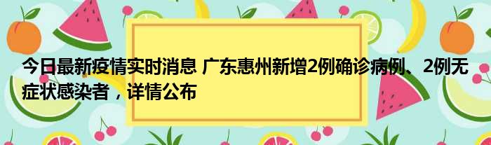 今日最新疫情实时消息 广东惠州新增2例确诊病例、2例无症状感染者,详情公布