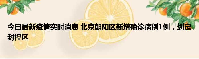 今日最新疫情实时消息 北京朝阳区新增确诊病例1例,划定封控区