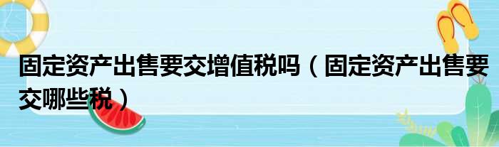 固定资产出售要交增值税吗(固定资产出售要交哪些税)