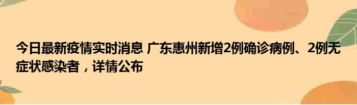 今日最新疫情实时消息 广东惠州新增2例确诊病例、2例无症状感染者,详情公布