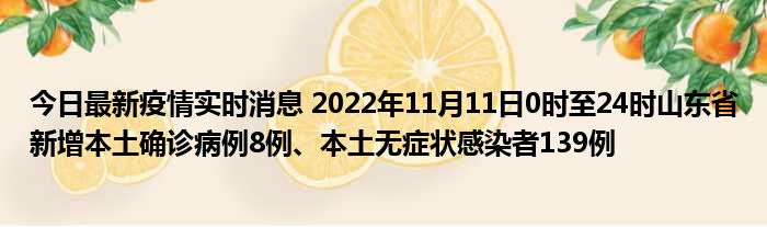 您的位置:首页 >动态频道 > 聚焦疫情 > 今日最新疫情实时消息 2022年11月11日0时至24时山东省新增本土确诊病例8例、本土无症状感染者139例 2022-11-25 11:02:20 • 来源: 导读 免责声明:本文由用户上传,如有侵权请联系删除! 上一篇:今日最新疫情实时消息 新疆11月11日新增确诊病例25例、无症状感染者693例 下一篇:今日最新疫情实时消息 深圳11月11日新增2例确诊病例和5例无症状感染者,详情公布