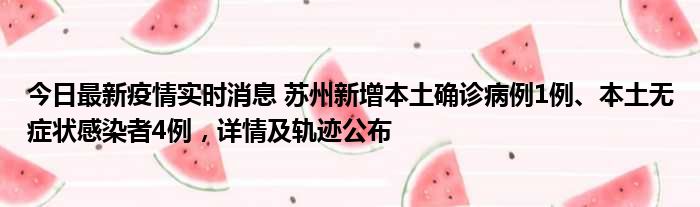 今日最新疫情实时消息 苏州新增本土确诊病例1例、本土无症状感染者4例,详情及轨迹公布