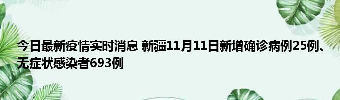 据新疆卫健委,11月11日0时至24时,新疆维吾尔自治区新增确诊病例25例,新增无症状感染者693例,新增确诊病例治愈出院7例,新增无症状感染者解除隔离医学观察120例