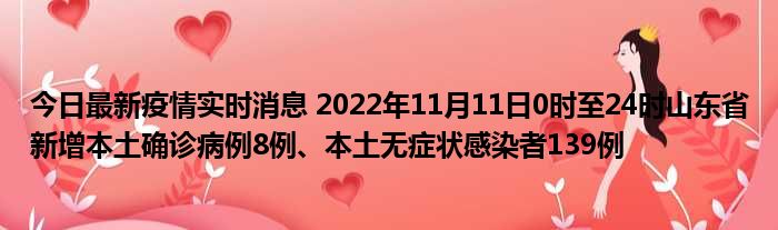 您的位置:首页 >动态频道 > 聚焦疫情 > 今日最新疫情实时消息 2022年11月11日0时至24时山东省新增本土确诊病例8例、本土无症状感染者139例 2022-11-25 16:34:16 • 来源: 导读 免责声明:本文由用户上传,如有侵权请联系删除! 上一篇:今日最新疫情实时消息 新疆11月11日新增确诊病例25例、无症状感染者693例 下一篇:今日最新疫情实时消息 深圳11月11日新增2例确诊病例和5例无症状感染者,详情公布