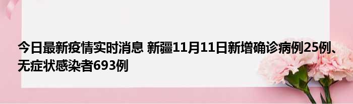 据新疆卫健委,11月11日0时至24时,新疆维吾尔自治区新增确诊病例25例,新增无症状感染者693例,新增确诊病例治愈出院7例,新增无症状感染者解除隔离医学观察120例