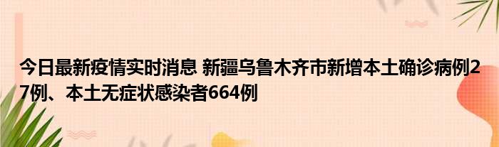今日最新疫情实时消息 新疆乌鲁木齐市新增本土确诊病例27例、本土无症状感染者664例