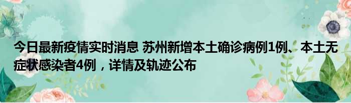 今日最新疫情实时消息 苏州新增本土确诊病例1例、本土无症状感染者4例,详情及轨迹公布