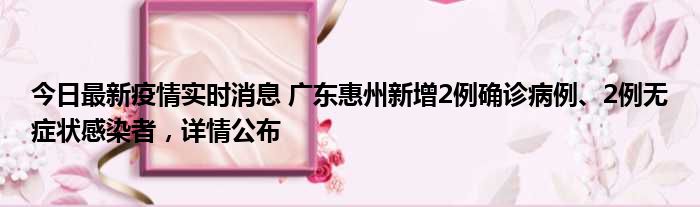 今日最新疫情实时消息 广东惠州新增2例确诊病例、2例无症状感染者,详情公布