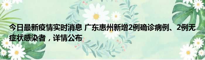 今日最新疫情实时消息 广东惠州新增2例确诊病例、2例无症状感染者,详情公布
