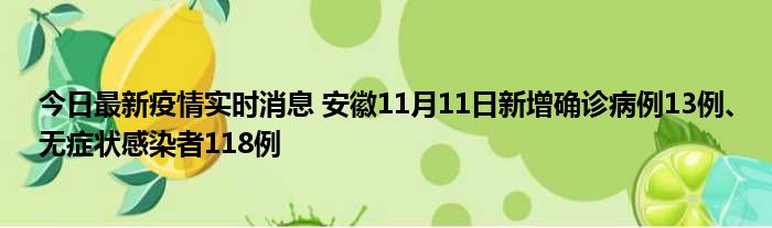 今日最新疫情实时消息 安徽11月11日新增确诊病例13例、无症状感染者118例