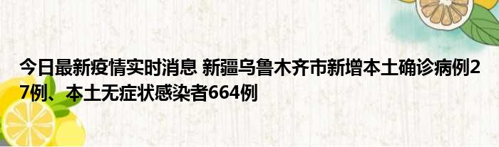 今日最新疫情实时消息 新疆乌鲁木齐市新增本土确诊病例27例、本土无症状感染者664例