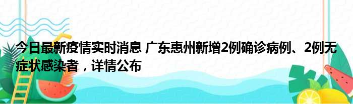 今日最新疫情实时消息 广东惠州新增2例确诊病例、2例无症状感染者,详情公布