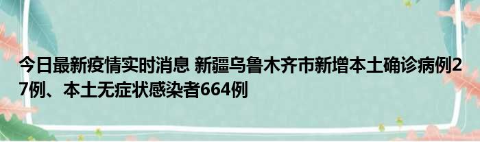 今日最新疫情实时消息 新疆乌鲁木齐市新增本土确诊病例27例、本土无症状感染者664例